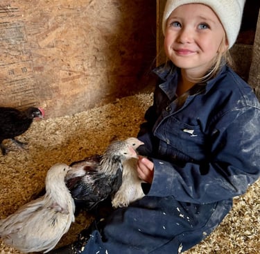 Family, land, and stewardship guide everything we do. We raise heritage hens with care, offer chicks to fellow growers, and provide farm-fresh eggs gathered daily from our flock. Each animal is tended with patience and intention, and we produce food we are proud to serve at our own table.